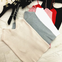 春夏欧美百搭V领针织吊带修身显瘦露背细肩带打底衫内搭小背心女