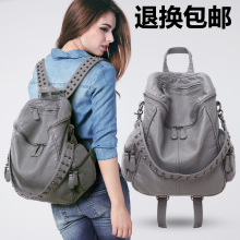 2016秋新款韩版铆钉双肩包女包软皮休闲旅游小背包手提斜挎单肩包