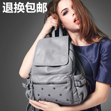 2017新款软皮旅行小背包欧美街头铆钉旅游双肩包女包休闲韩版书包
