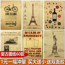 复古图纸海报画 酒吧宿舍墙面装饰画贴画墙画壁画复古文艺装饰画