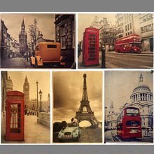 复古风情海报装饰画芯 欧美街道建筑人物酒吧宿舍寝室墙纸墙贴画