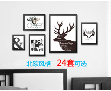 北欧装饰画组合客厅黑白壁画卧室床头挂画创意照片墙画抽象麋鹿