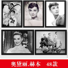 奥黛丽赫本装饰画复古明星人物挂画经典黑白电影海报墙壁画有框画