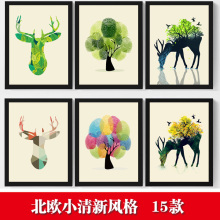 北欧装饰画小清新挂画现代简约客厅三联画组合餐厅卧室壁画麋鹿
