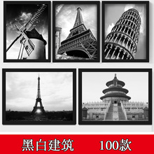 黑白建筑装饰画客厅现代简约风景画酒吧有框挂画墙画欧式组合壁画