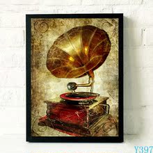 老唱片机欧美怀旧复古咖啡厅装饰画酒吧创意挂画现代客厅壁画有框