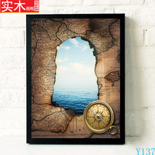 古航海地图欧美怀旧复古咖啡厅装饰画创意酒吧挂画壁画现代有框画