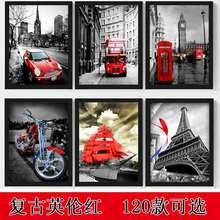 欧式黑白建筑装饰画客厅怀旧复古咖啡厅墙画酒吧挂画KTV汽车壁画