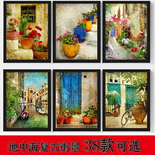 欧式墙画复古装饰画客厅地中海风景挂画组合乡村卧室建筑街景壁画