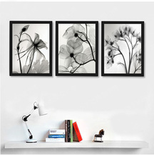 北欧客厅装饰画黑白抽象挂画现代简约宜家卧室床头画三联壁画花卉