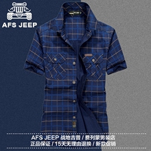AFS JEEP纯棉短袖衬衫男士2017夏季中年宽松大码吉普衬衣男装寸衫
