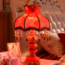wanlang欧式结婚台灯婚房新婚庆创意温馨卧室床头灯 红色台灯5138