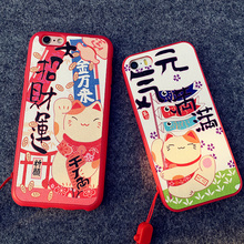 招财猫苹果6s手机壳iphone6s/7plus/5s保护套挂脖绳创意硅胶外壳