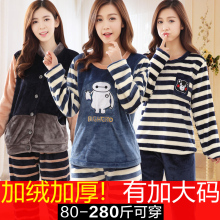 冬季特大码珊瑚绒睡衣女加厚可爱加肥加大法兰绒家居服套装200斤