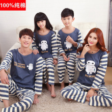 春秋长袖纯棉亲子睡衣一家三口母女家庭装卡通可爱亲子家居服套装