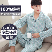 夏季男士睡衣春秋纯棉长袖夏天薄款全棉中年加大码套装男式家居服