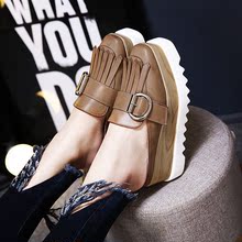 韩版潮女鞋磨砂皮乐福鞋女厚底内增高休闲鞋运动旅游懒人套脚单鞋