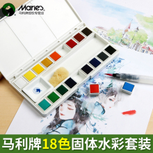 马利18色固体水彩颜料 36色写生透明水彩套装 送自来水笔海绵