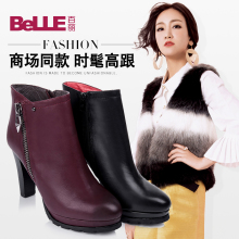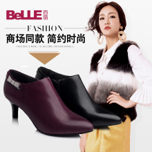 活动Belle/百丽牛皮冬高跟短靴尖头女时装靴BVBR8DD4