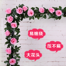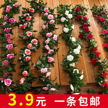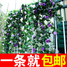 仿真玫瑰花藤条壁挂假花藤暖气管室内客厅装饰吊顶塑料花藤蔓植物