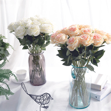 3头仿真花玫瑰花朵假花装饰花客厅仿真花落地插花花束塑料花