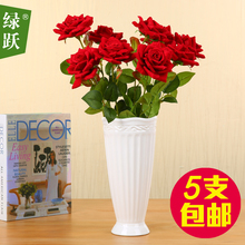 仿真玫瑰花套装绢花假花塑料花客厅装饰花单支摆件花束花艺摆设