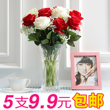 10枝/一套 仿真玫瑰花束装饰假花单支装饰塑料花绢花婚庆客厅摆件