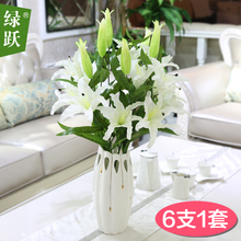 仿真百合花套装绢花客厅插花室内装饰花假花花艺摆件塑料花