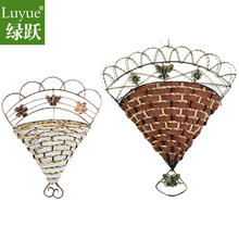 仿真花瓶花盆花篮壁挂铁艺花篮藤编壁挂花器装饰假花草编藤编花艺