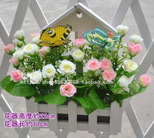 外贸仿真花套装木质风车房子等多款玫瑰花挂墙 花器 花盆花瓶