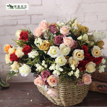 9头把束玫瑰仿真玫瑰假花束绢花艺墙装饰花朵客厅装饰婚庆批 发