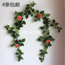 玫瑰仿真花藤壁挂绿植假花藤蔓室内阳台水管空调吊顶树叶装饰藤条