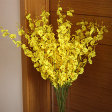 特价单枝跳舞兰仿真花/假花绢花客厅装饰花黄色文心兰落地花批发