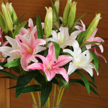 3头香水百合仿真花/虎兰假花绢花客厅装饰花田园落地花.6枝包邮