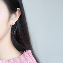S925银耳环女日韩风简约圆形耳环气质几何形长款耳链耳饰品