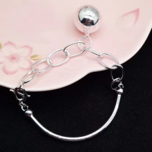 S925银日韩时尚个性铃铛手链 素银简约百搭经典时尚延长链 送女友