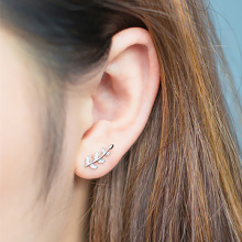 小银匠 2016新款925纯银韩版个性时尚锆石树叶叶子防过敏女耳钉