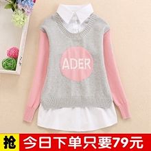 童装女童毛衣2017春装新款中大童针织衫儿童纯棉拼接衬衫领假两件