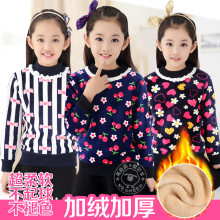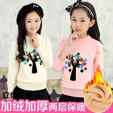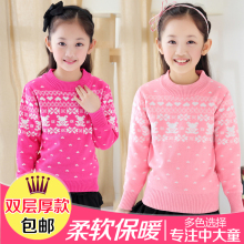 女童毛衣加绒加厚圆领套头秋冬装针织衫儿童打底衫羊毛衫中大童装