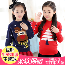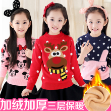 天天特价冬季女童毛衣加绒加厚外套圆领套头衫中大童女孩子纯棉