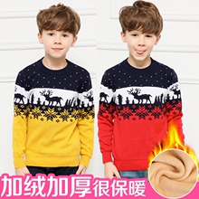 男童毛衣加绒加厚秋冬装羊毛衫男孩儿童中大童外套圆领针织打底衫