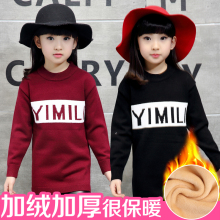 女童毛衣加绒加厚套头秋冬外套儿童装圆领中大女孩针织打底衫羊毛