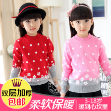 天天特价冬季女童毛衣打底衫全棉长袖加厚圆领套头中大儿童针织衫