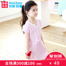 米妮哈鲁童装2017夏装新款女童韩版连衣裙儿童粉色裙子ZO2052燚