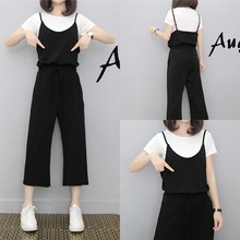 时尚套装女夏2017新款名媛气质吊带阔腿裤短袖T恤休闲运动两件套