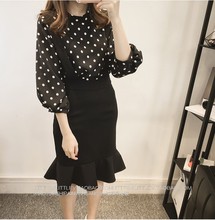 200斤2016韩版秋装胖mm加肥加大码女装波点鱼尾背带套装两件套潮