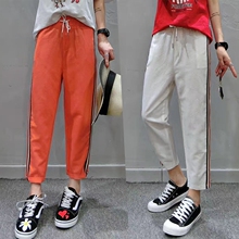 高圆圆同款春夏薄款韩版侧条纹束脚运动裤女宽松哈伦裤九分休闲裤