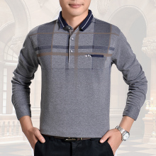 爸爸装中老年人男装长袖秋季体恤父亲秋装大码T恤中年男士长袖t恤