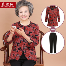 妈妈装套装中老年人春装上衣+裤子女装60-70岁80奶奶装两件套夏装