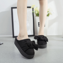 2016冬季新款女士糖果色包跟棉拖鞋大蝴蝶结高跟防水台松糕底拖鞋